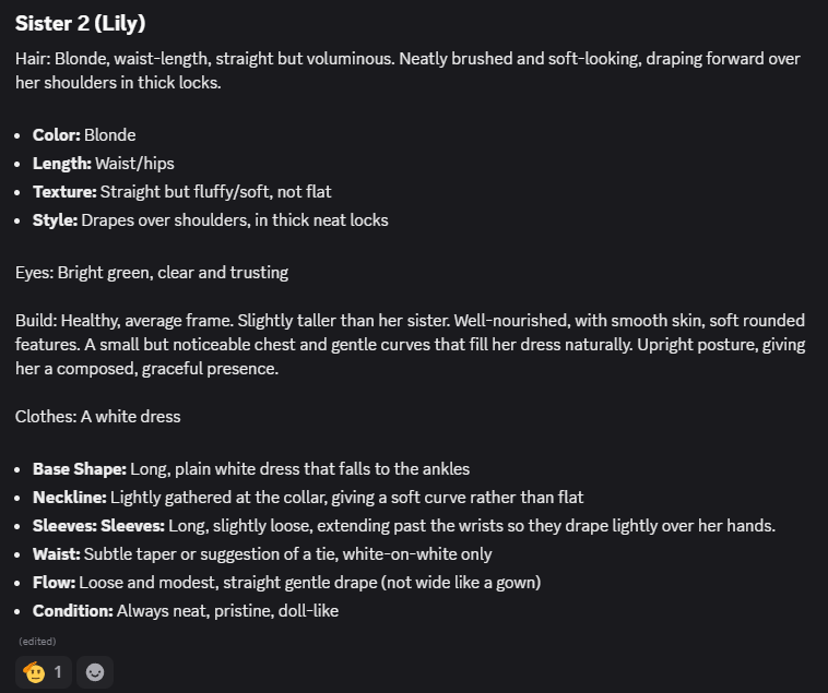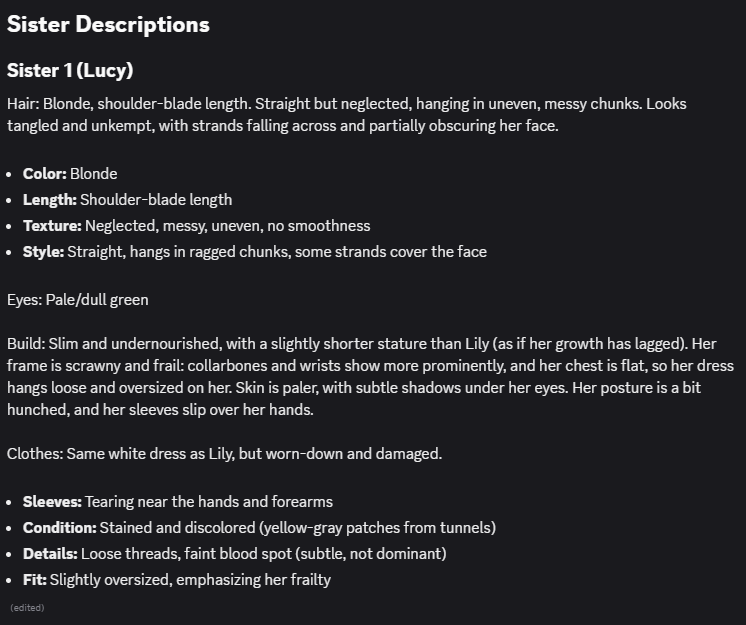 In the evening, the VA decision was made. Soli was Lily, ESHA was Lucy. Also, the twins' names were chosen. Before this point, they were Sister 1 and Sister 2. In notes, I used Ana as a placeholder name for Lucy. I brought that name back for a fun lore idea.